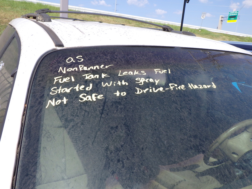 NO INSPECTION; NON RUNNER, FUEL TANK LEAKS FUEL, STARTED WITH SPRAY, NOT SAFE TO DRIVE, FIRE HAZARD