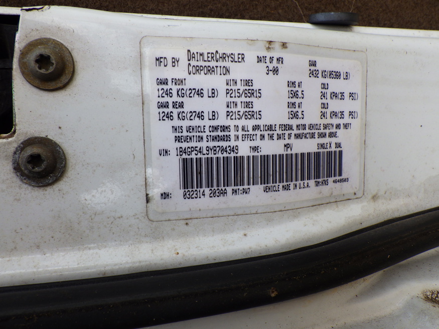VIN: 1B4GP54L9YB704349