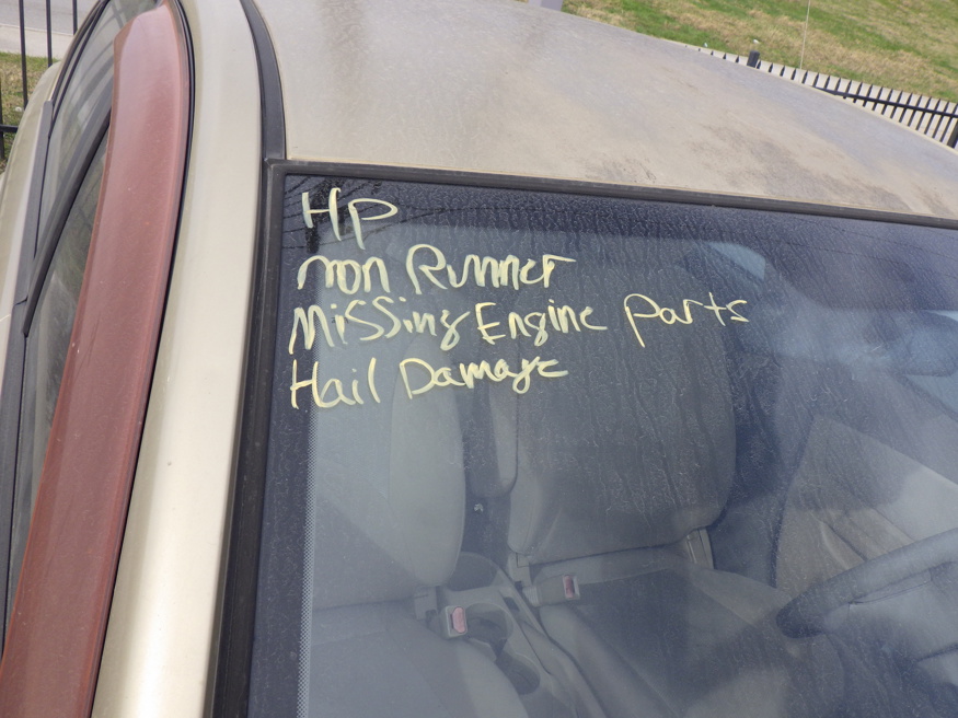 NON RUNNER, MISSING ENGINE PARTS, HAIL DAMAGE