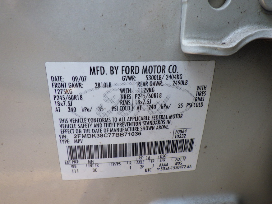 VIN: 2FMDK38C77BB71036