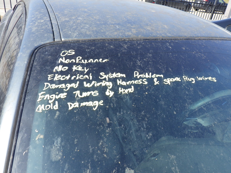 | NO INSPECTION; NON RUNNER, NO KEY, ELECTRICAL SYSTEM PROBLEM, DAMAGED WIRING HARNESS & SPARK PLUG WIRES, ENGINE TURNS BY HAND, MOLD DAMAGE, NOT ACTUAL MILEAGE | |