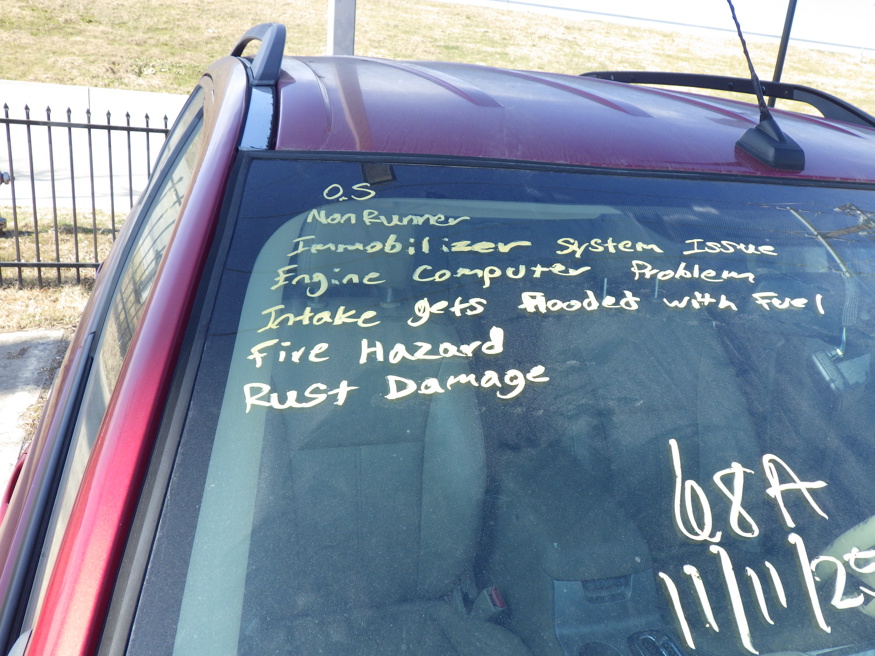 NO INSPECTION; NON RUNNER, IMMOBILIZER SYSTEM ISSUE, ENGINE COMPUTER PROBLEM, INTAKE GETS FLOODED WITH FUEL, FIRE HAZARD, RUST DAMAGE