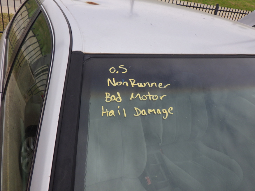| NO INSPECTION; NON RUNNER, BAD MOTOR, HAIL DAMAGE | |