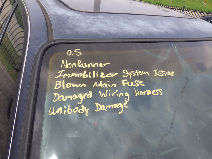 NO INSPECTION; NON RUNNER, IMMOBILIZER SYSTEM ISSUE, BLOWN MAIN FUSE, DAMAGED WIRING HARNESS, UNIBODY DAMAGE