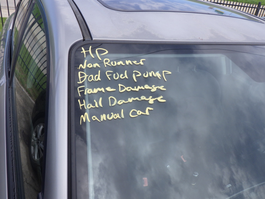 NO INSPECTION; NON RUNNER, MANUAL TRANSMISSION, BAD FUEL PUMP, FRAME DAMAGE, HAIL DAMAGE