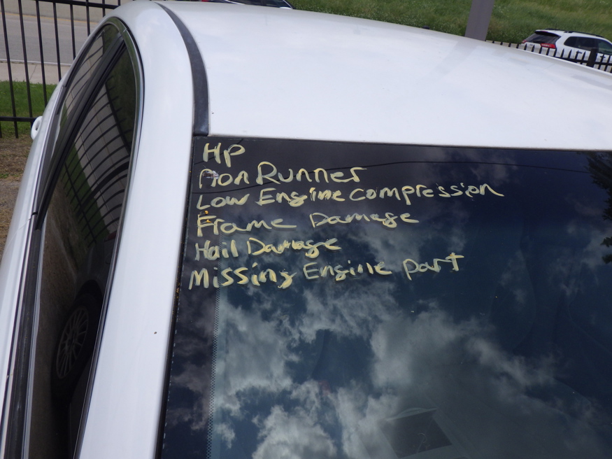 NO INSPECTION; NON RUNNER, LOW ENGINE COMPRESSION, FRAME DAMAGE, HAIL DAMAGE, MISSING ENGINE PARTS