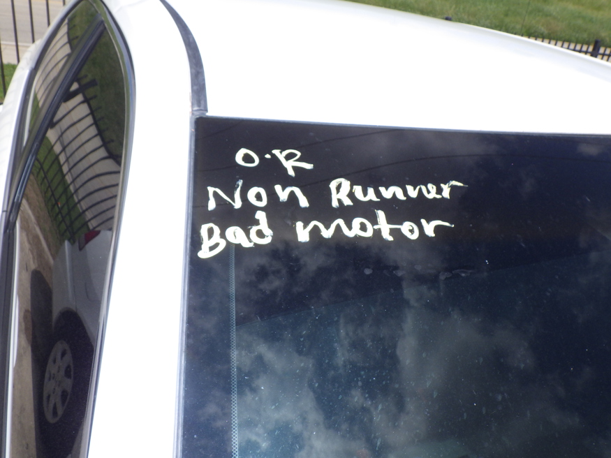 NO INSPECTION; NON RUNNER, BAD MOTOR